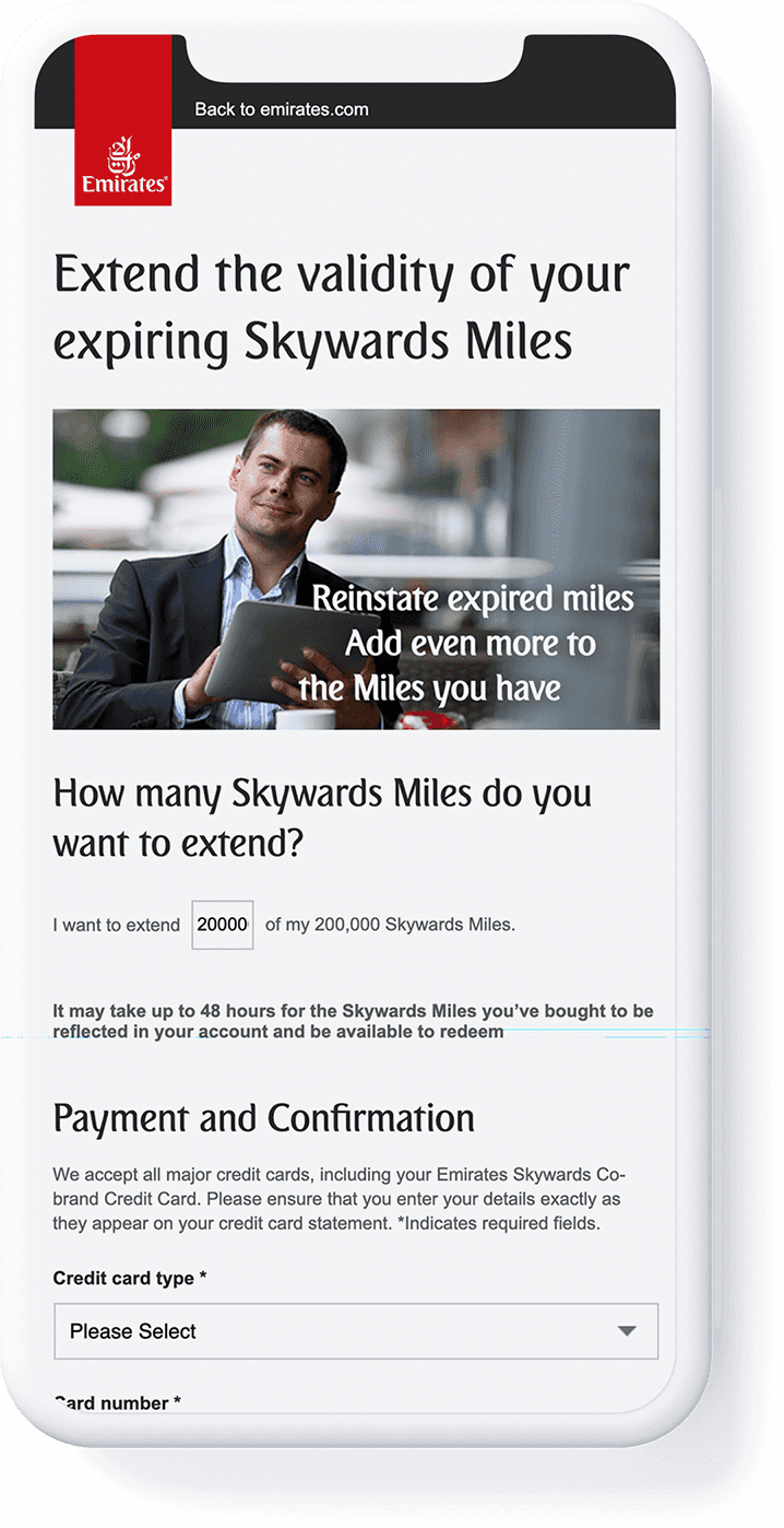 Enable your members to purchase points/miles wherever they are in their loyalty journey.